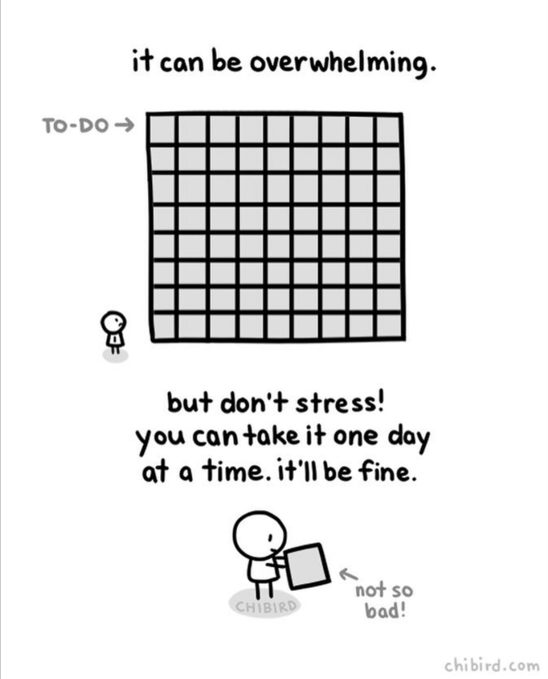 - Balance your time by breaking the large task or project into smaller tasks. Reduce the amount of time you allocate to each of those tasks, to avoid you from feeling overwhelm.